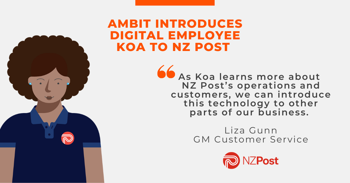 NZ Post has deployed its first digital employee, a smart chatbot named Koa, using Ambit’s conversational AI platform. The chatbot allows small or home-based business customers in the My NZ Post Business portal to receive an immediate response, at any time of day, to commonly asked questions, freeing up the Customer Care team to solve more complex queries.
